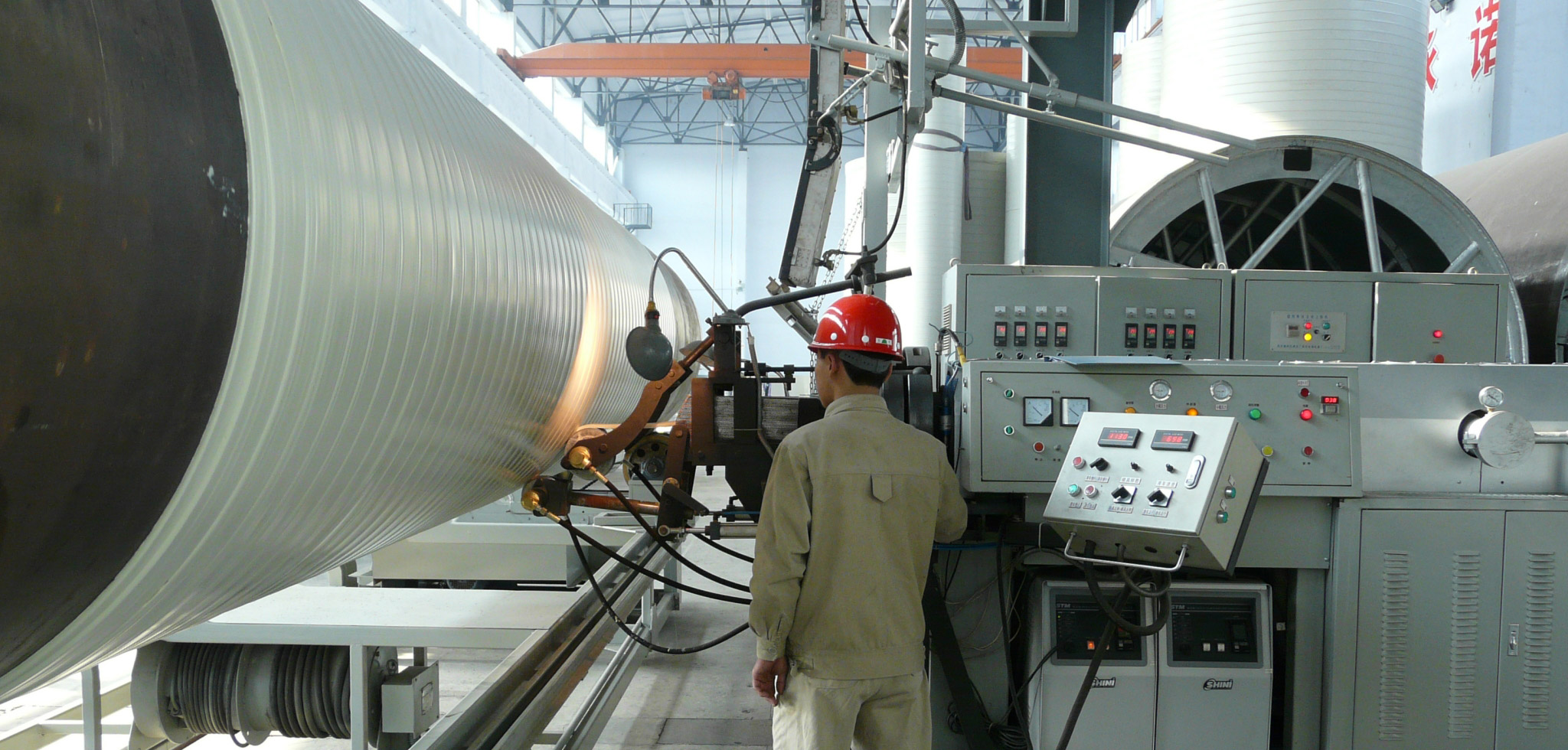 孚拉瑞斯公司引進先進的螺旋纏繞疊加成型機組和工藝,筒節(jié)可一次加工成型,無焊縫,厚度可達65mm以上;同時,可實現筒節(jié)上薄下厚,使筒節(jié)整體受力均勻、設計合理,可確保儲罐的機械強度和安全可靠性。